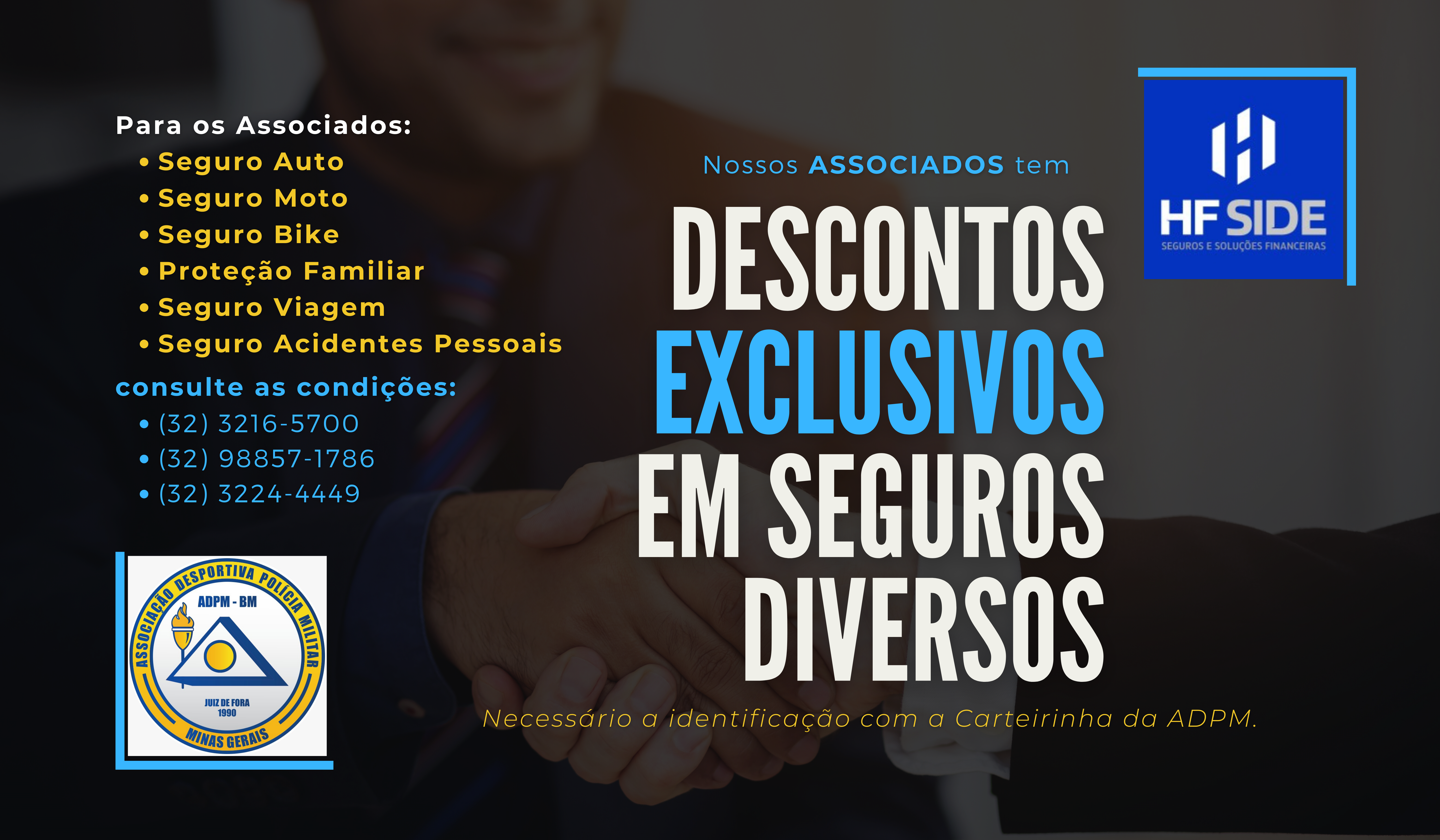 A ADPM-BM acaba de firmar mais uma parceria de peso para garantir proteção, tranquilidade e vantagens exclusivas aos nossos associados. Agora, com a HF Side Seguros, você tem acesso a uma ampla gama de seguros com condições especiais e atendimento personalizado, tudo pensado para o seu bem-estar e da sua família.